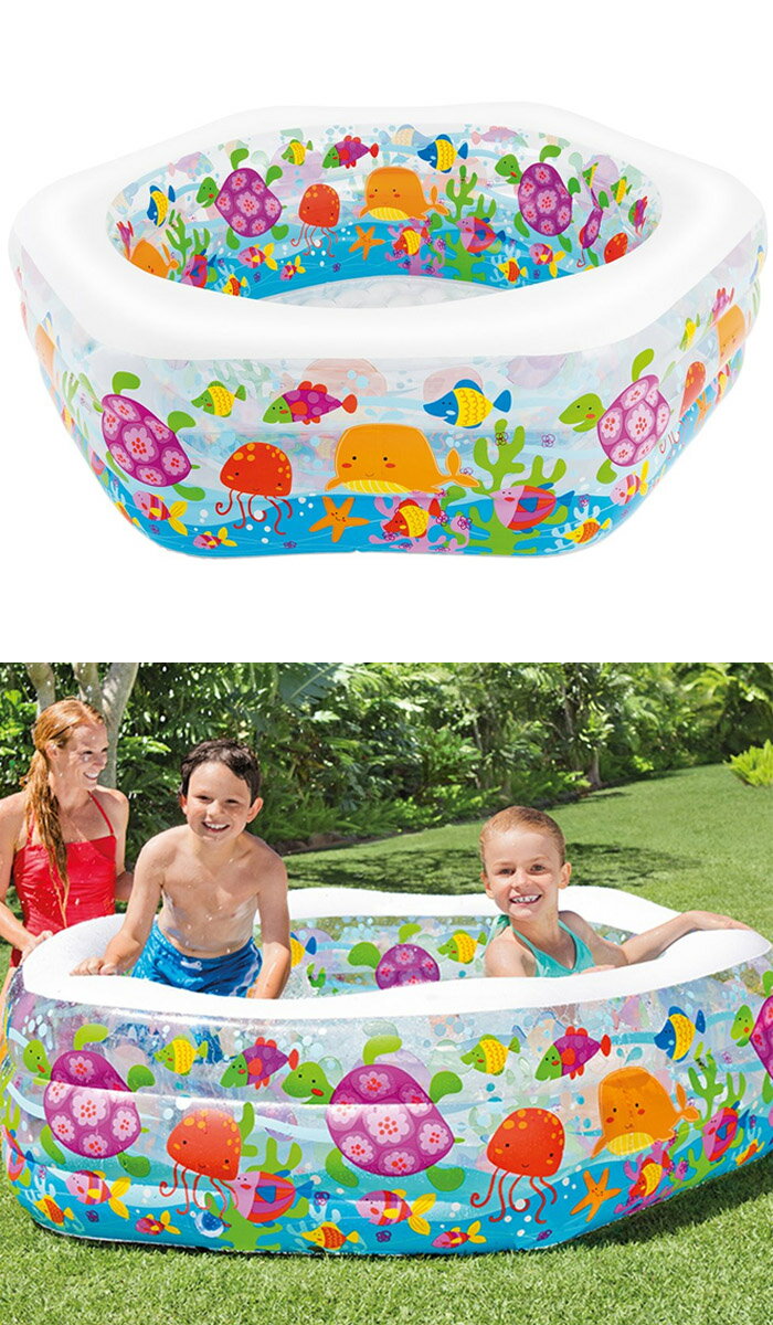 カラフルな魚たちのイラスト まるで海の中にいるような感覚で水遊びを楽しめます --------------------------------------------- ■サイズ:約191cm×約178cm×約61cm ■重量:約4kg ■水量目安:高さ41cmまで入れて510L ■付属品:修理用パッチ 初期不良のみ応させていただきますが、テープ等で補修可能な軽微な空気漏れはご了承ください。