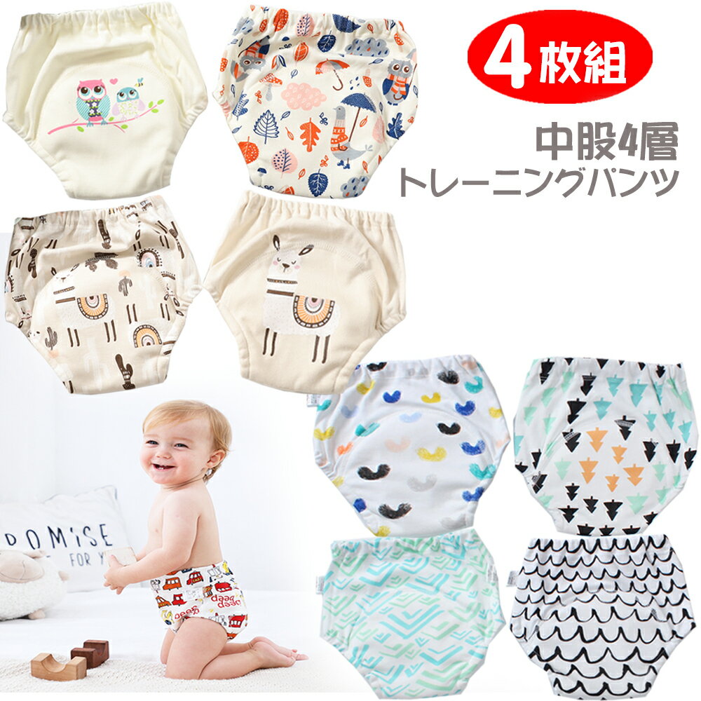 トレーニングパンツ 4層 4枚組 男の子 女の子 90 100 110 おねしょ パンツ ガーゼ 防水層付 おねしょ ズボン 吸水性改良 おねしょ対策 通気性 トイトレ トレパン 布おむつ キッズ ベビー