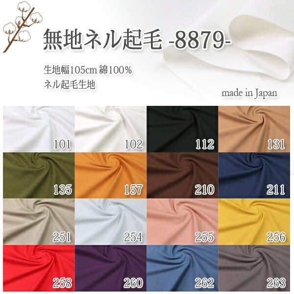 ミシン糸のご注文は→こちらから 無地ネル起毛-8879-/ネル起毛生地 生地幅105cm/綿100% ネル起毛生地 柔らかな無地のネル生地の入荷です。