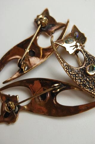 ギフト対応 ゴールドに近い輝きのブロンズ(青銅)製のブローチ! キュートなネコモチーフ☆